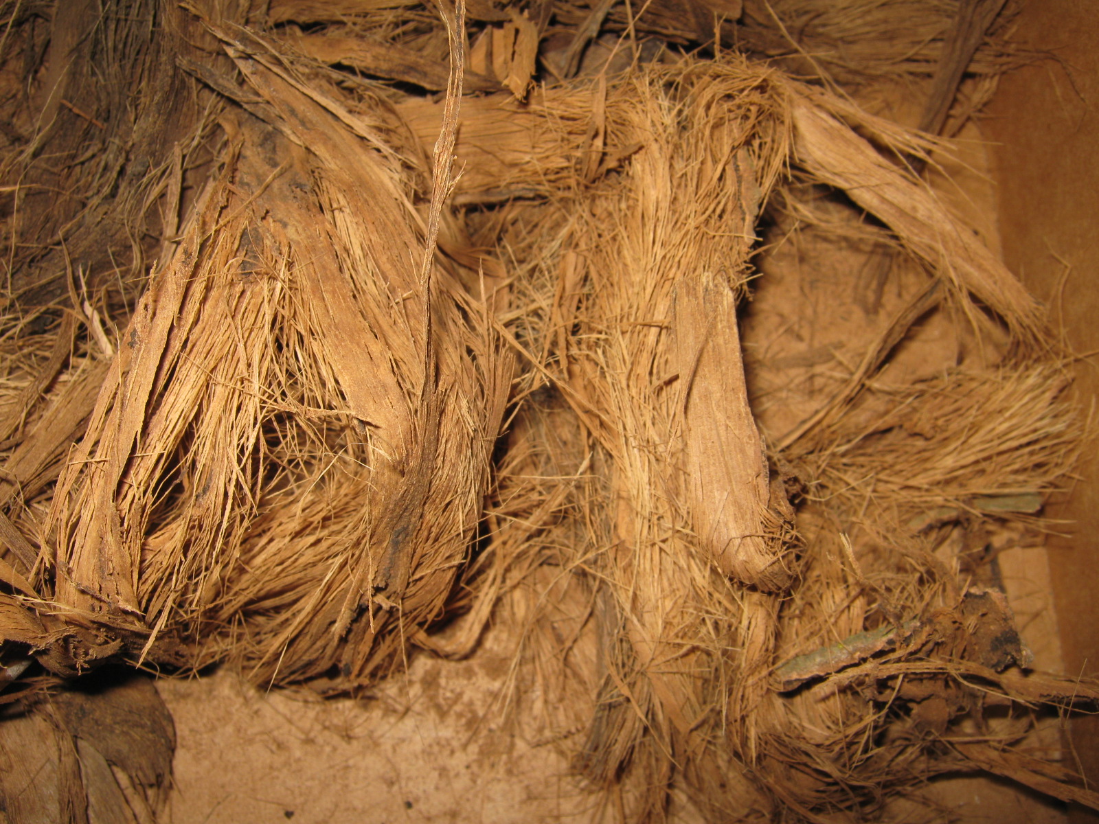 I was out by the St Johns river the other day and finally got around to gathering some cottonwood inner bark. This is from a dead standing tree. Even still, its moist because of all the dew and frost lately. I spread it out in a soda flat to dry next to the fireplace. This stuff is great for flint and steel with char cloth. It takes flame quickly. I shred it fine and I hear if you powder it you can get a glowing coal from a ferro cerium rod. Some folks have made cordage from the live inner bark. I can see how that would work, this stuff being so fibrous. Carvers look for the thick bark, 2-6" thick, for carving material. A small chunk of bark makes a very good hand hold for bow drill fire making. I have one that is at least 10 years old and has no wear but a nice shiny polish where the spindle fits.